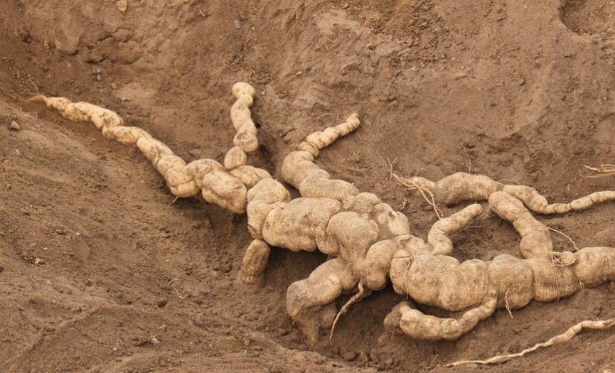 栝樓栽后第3年,于霜降前后采挖。挖時(shí)沿根的方向深刨細(xì)挖,避免挖爛。挖取后去掉蘆頭,洗凈泥土,趁鮮刮去粗皮,切成3厘米長(zhǎng)的小段,然后將其搗爛、磨碎,濾去雜質(zhì),澄清濾液,取出沉淀物,曬干即為純正的天花粉。